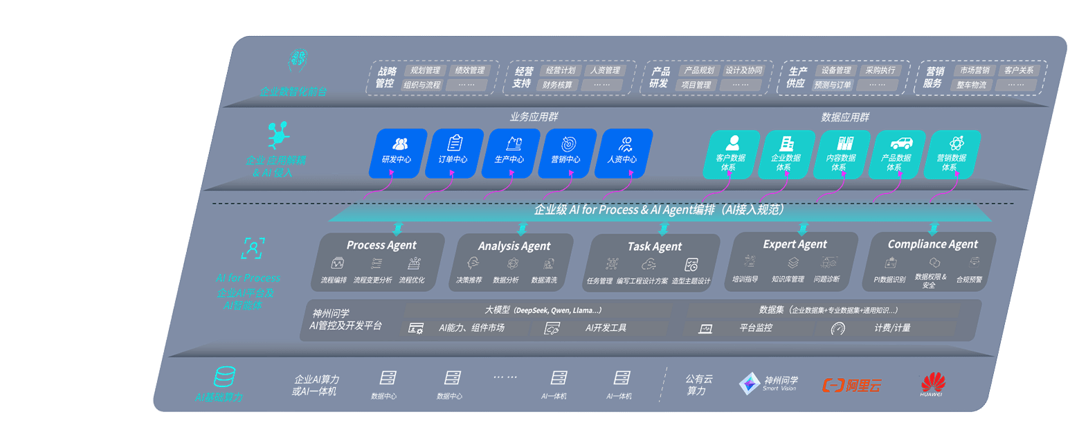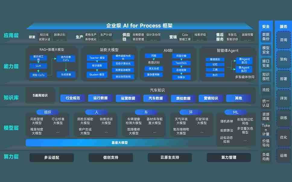 端到端的一站式AI工作空间深度融合了从企业战略规划到日常经营的全流程业务板块,,,定向解决车企内部领域多、、部门多、、、、链条长、、场景碎片化等难题,,支持车企快速构建以AI为核心的生产力写作体系,,,,实现任务执行与AI能力的无缝集成与交互